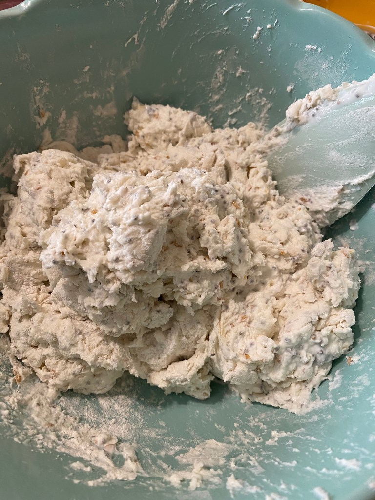 everything is incorporated. The dough will be sticky and shaggy.