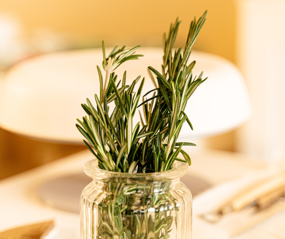 Sprinkle with rosemary leaves, and add the garlic cloves between the potatoes.